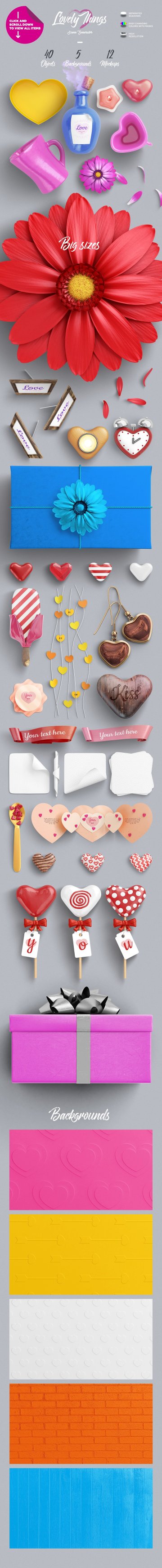 图穷联素材库 » 可爱的情人节主题场景展示模型设计元素