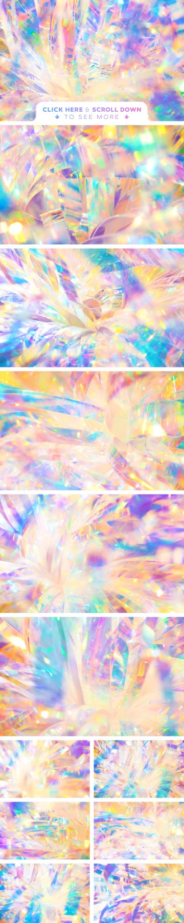 今天为大家分享的是,12个梦幻的全息背景纹理素材,使用他们可以制作出梦幻、闪耀的项目,适用于封面、包装、演示文稿、婚礼邀请函、艺术版画、网站、海报等,enjoy!