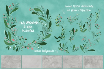 图穷联素材库 » 冬季森林主题手绘花卉动物图案元素无缝背景素材