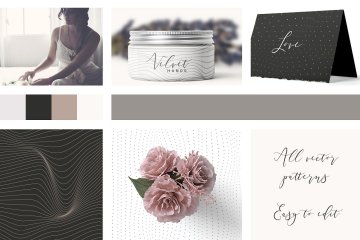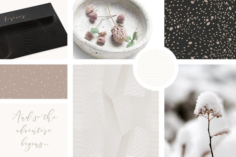 我喜欢使用这种银色,金色和裸色的调色板,我觉得它设定了与这些线性,波浪形,点缀,最小图案互补的精确情绪。它们可以为您的设计增添迷人的外观,但它们拥有经典的美感,为您提供如此多的创意游戏选项(请查看预览截图以获取灵感)。