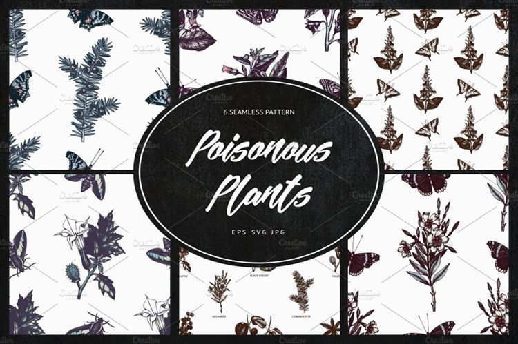 图穷联素材库 » 有毒植物和花卉图案 Poisonous Plants Fl