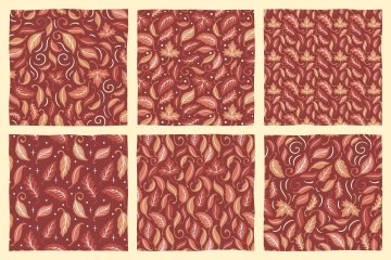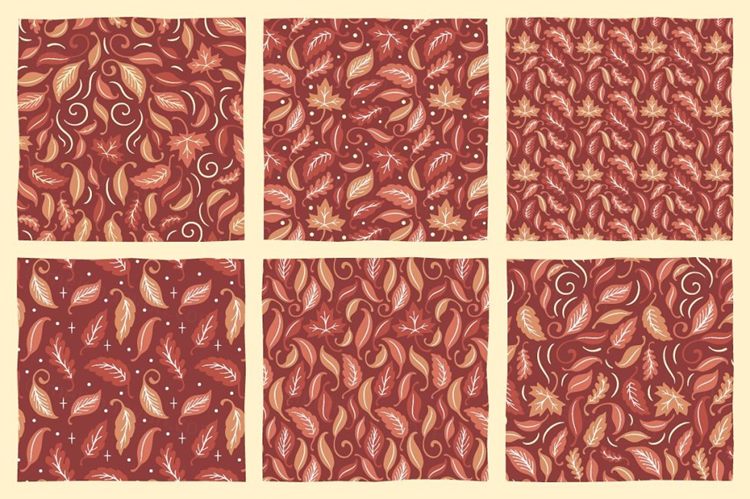图穷联素材库 » 秋季主题树叶线条无缝背景设计素材 6 Autumnal Pa