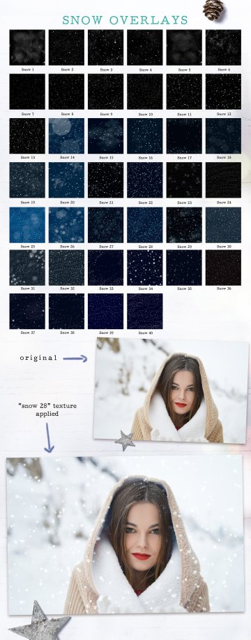 40 Snow Overlays保存为5000x5000像素jpeg。
