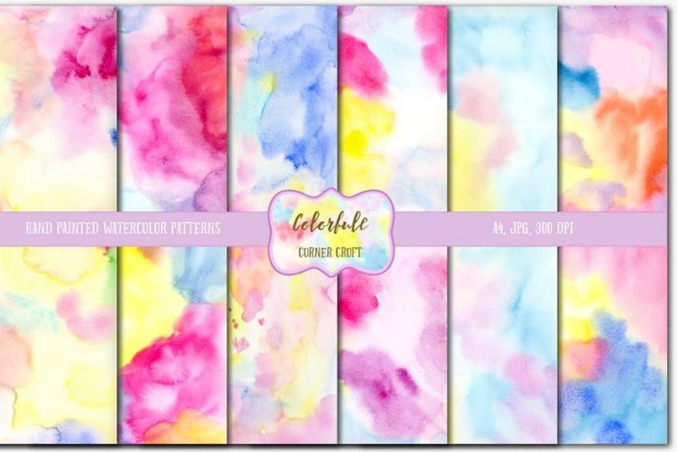 图穷联素材库 » 多彩流动的水彩背景纹理素材Watercolor-Patter