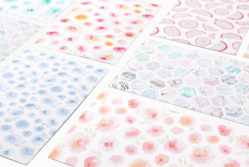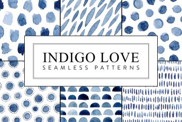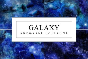模式呈现为6个主题集合。银河图案,金色圆点,靛蓝爱,墨水涂鸦,大理石瓷砖和水彩爱。