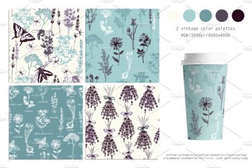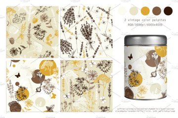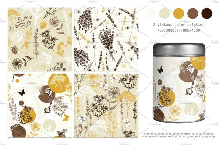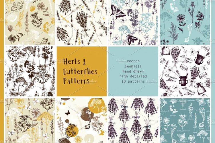 图穷联素材库 » 10种手绘草药和植物图案 10 Herbs Butterf