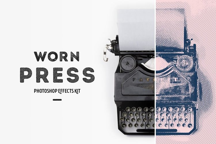 图穷联素材库 » 旧式怀旧丝网印刷效果图层样式设计素材Worn-Press-P