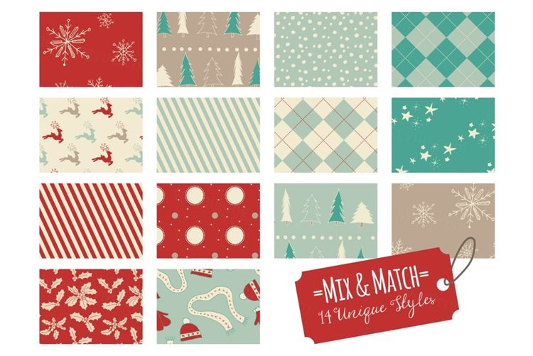甜蜜、手工绘制的圣诞纸混合和匹配—可爱的任何组合!用它们来做贺卡、摇摆标签、剪贴簿背景、派对请柬,任何你能想到的!