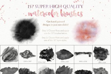 这款设计最初的想法是把尽可能多的不同的水彩画资源包括进来——画笔、矢量和一整套的颜色和颜色组合作为Photoshop的样式。 但是,许多人对金子和所有闪闪发光的东西有点着迷,所以加入一些(后来变成了很多)新的闪光风格。我希望您会发现这成为您的首选水彩产品。