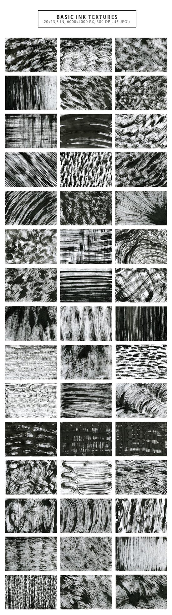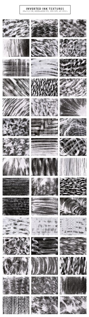 倒墨水背景卷2 - 45高分辨率黑色墨水背景和45倒置90纹理总计,6000x4000像素,20x13.3英寸,300 DPI!手工制作,扫描具有巨大的质量和细节,并在photoshop中编辑。