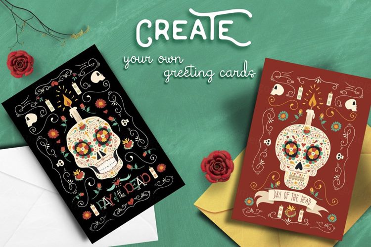 图穷联素材库 » 墨西哥亡灵节骷髅头元素无缝背景素材iamxk.com_Han
