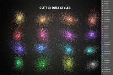 16种颜色的闪粉风格(银色,金色,金杏色,铜色,金色红色,玫瑰色,粉色,淡紫色,紫色,深蓝色,蓝色,淡蓝色,浅绿色,绿宝石色,绿色,绿色金色)