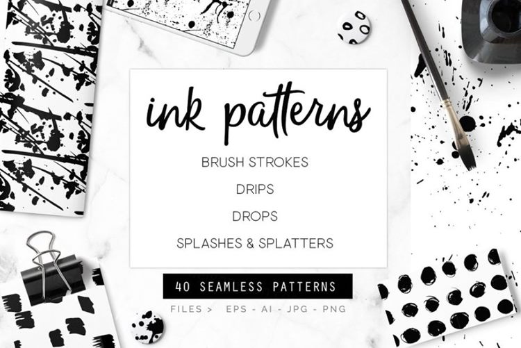 一套巨大的40种无缝墨模式,你的项目可能需要的一切。