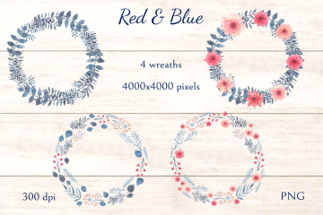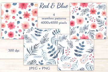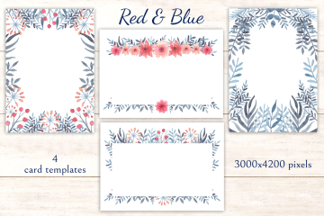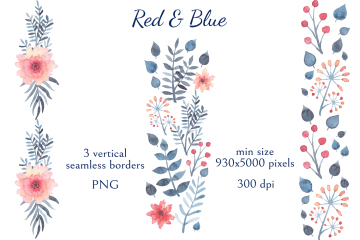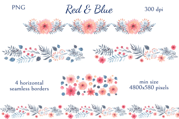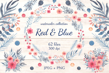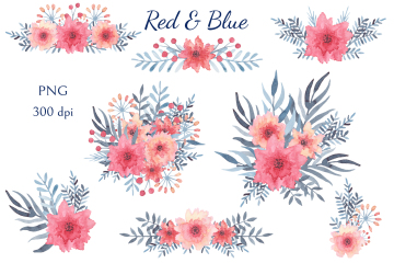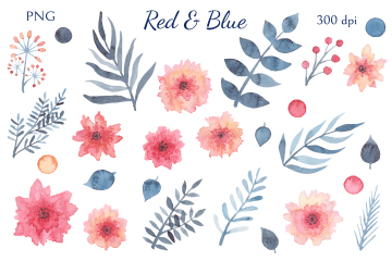 图穷联素材库 » 柔和舒适的蓝红水彩画花卉装饰免抠图素材合辑 Red Blu