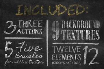 给你的艺术品一个独特的手工外观与黑板效果包。为了得到最真实的效果,所有的纹理都是用真正的粉笔花了很多时间的结果。