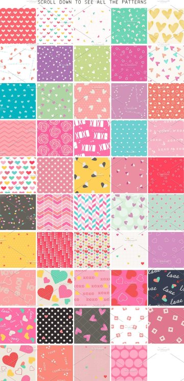 五十个无缝模式,保存为ai文件,个人12x12英寸jpeg,6x6英寸png和eps文件。