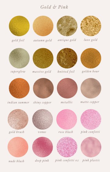 包含的纹理系列包括:“金色”,“大理石”,“珍珠母和珍珠”,“粉红色腮红”,“玫瑰金”,“银色和金属色”