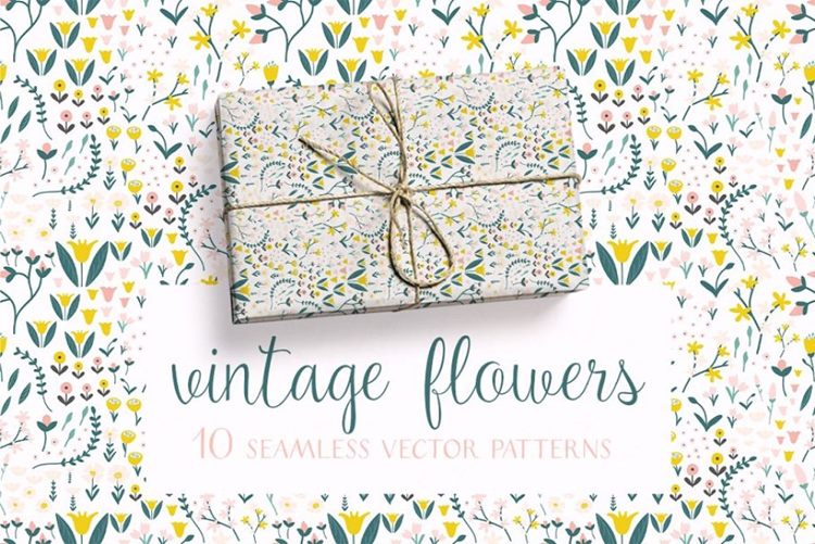 图穷联素材库 » 手绘精致花卉图案无缝背景素材 Vintage Flowers