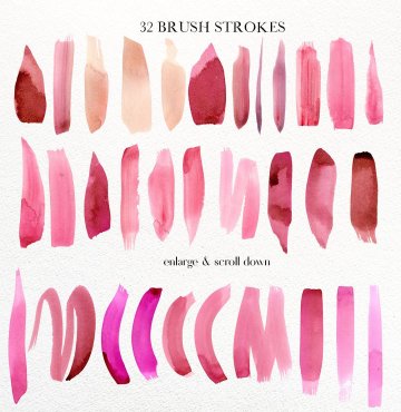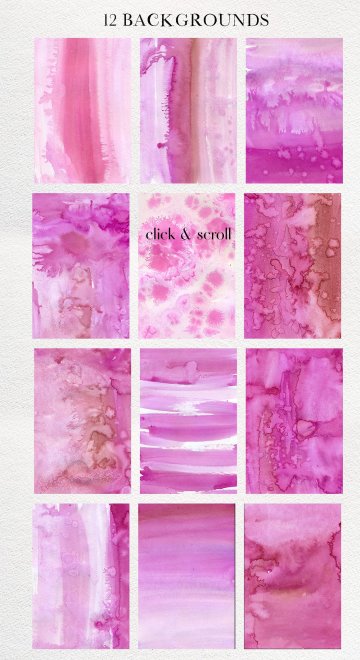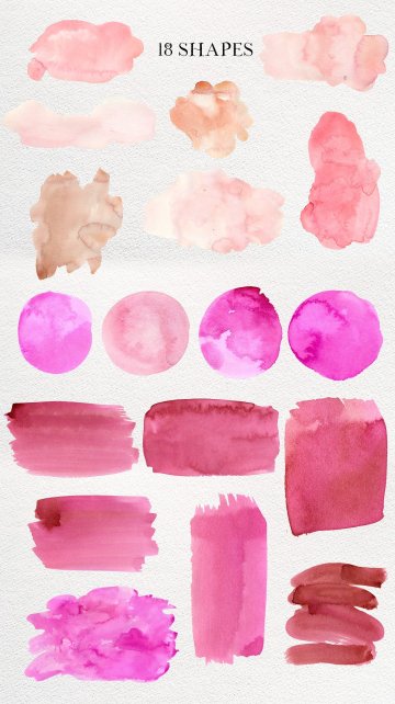 桃红色墨水 - 桃红色不同的树荫 - 水彩汇集。包括手绘水彩背景,画笔描边和污渍。非常适合设计邀请函,灵感报价和其他墙艺术,规划师,日历,博客和徽标,显示,卡片和剪贴簿项目。