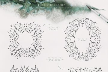 光滑的翡翠色变成灰色,再加上一个额外的手绘花纹和图案,再加上一个ombre,将会对你的风格起到补充作用。这个集合包含许多现成的图形:模式、框架、形状和花环。但也有各种各样的个体元素:花、花色和形状。一定要点击图片来查看所有的元素。