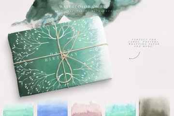 这些元素是创建鲜花店或小商店企业形象的理想选择。或者如果你突然需要装饰你的房间或者制作婚礼邀请。添加这个美丽的手绘颜色形状和树叶,就能创建出一张明信片。