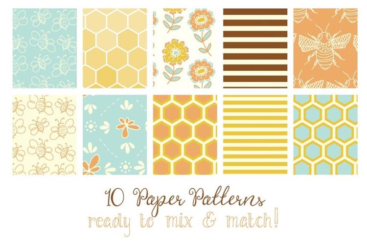 蜂蜜纸混合和匹配 — 可爱的任意组合! 使用它们作为剪贴背景、文具设计、邀请函,你可以命名它们!