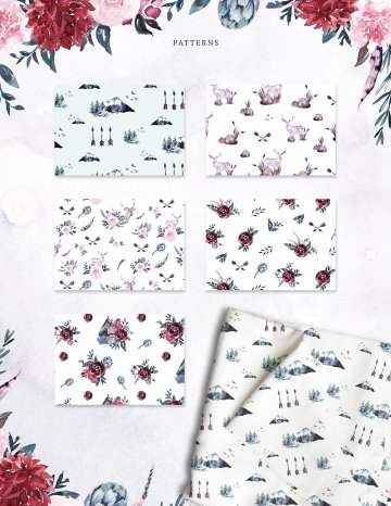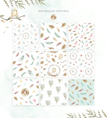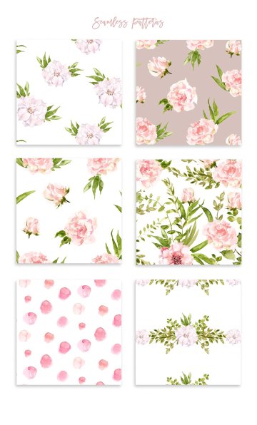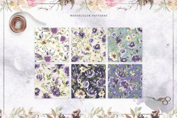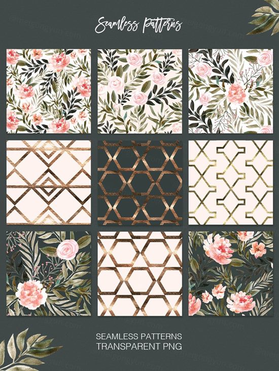 手绘水彩花卉背景纹理素材 Floral Patterns B