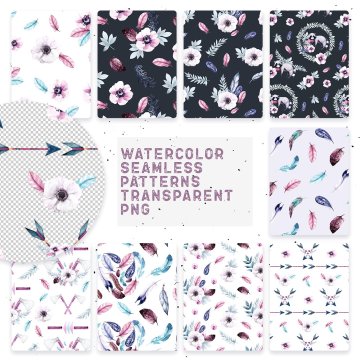 图穷联素材库 » 手绘水彩花卉背景纹理素材 Floral Patterns B