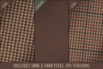 包中包含精选的皮革,粗花呢,绳索,棉布和毛毡瓷砖纹理。包括经典图案,如人字形,格子图案和猎犬牙齿。