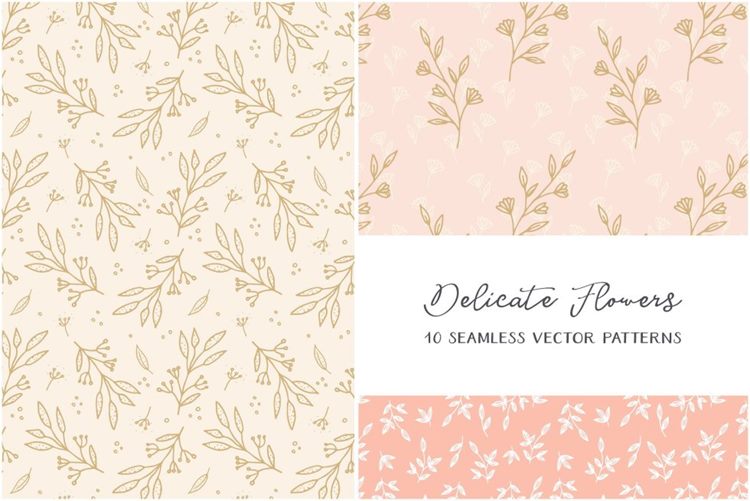 精致的花朵是手绘的矢量图案的集合,优雅而又女性化。每一件物品都用墨水笔绘制,扫描,数字化,然后变成无缝图案。