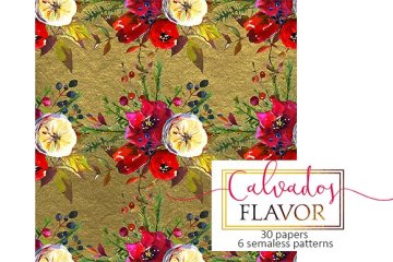 圣诞主题水彩花卉设计素材Christmas-floral-p