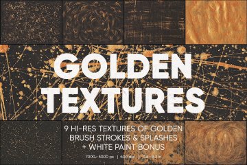 逼真的金色油漆喷溅纹理高清图9 Macro Golden P