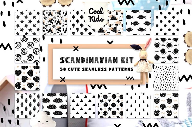 图穷联素材库 » 可爱的50种斯堪的纳维亚手绘无缝背景素材50_Scandin