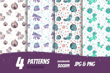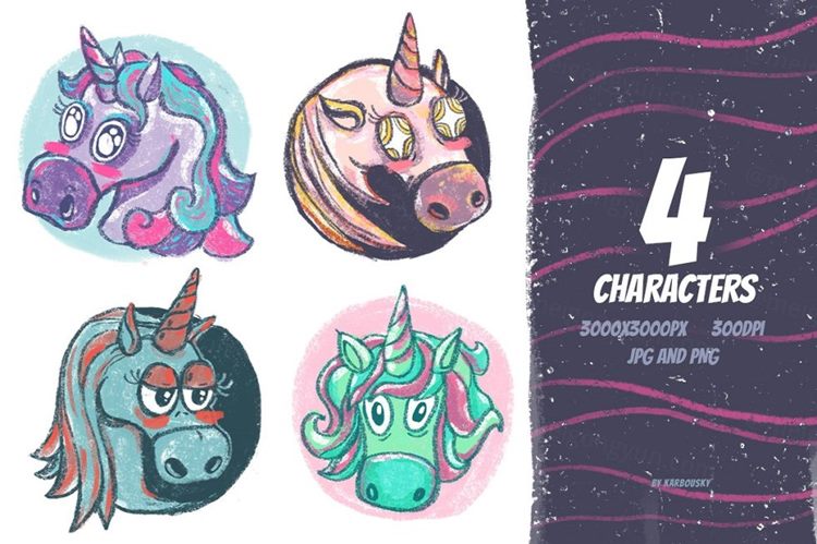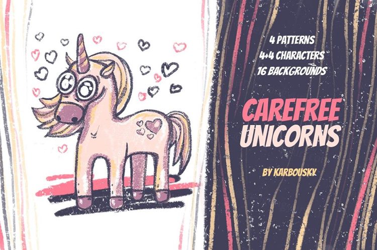 图穷联素材库 » 充满童趣的独角兽插画设计素材 Carefree Unicor