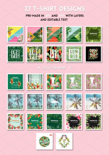 27个预制T恤设计(带有图层和可编辑文字的.EPS + .PSD文件!);