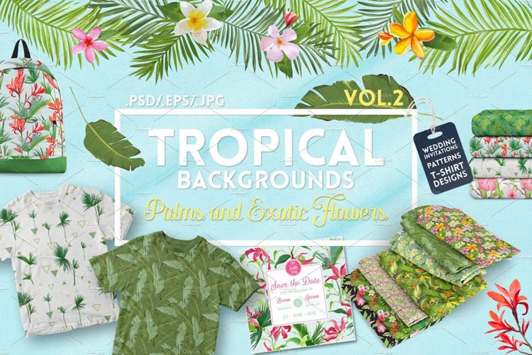 32款热带花卉无缝背景素材CM_-_Tropical_Des