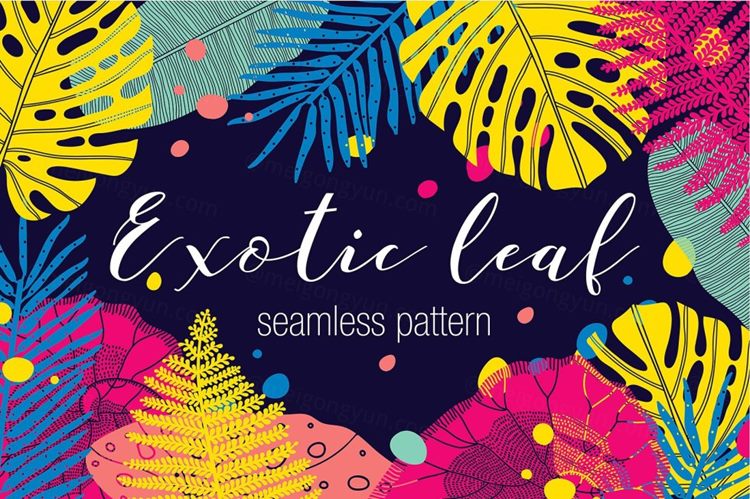 图穷联素材库 » 异国情调的夏天植物背景无缝纹理 Exotic_leaf_Su