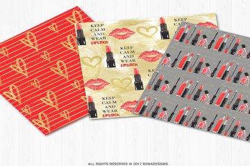 高质量的数字论文。这套14套原创手绘时尚红唇数码纸套装+5张海报。