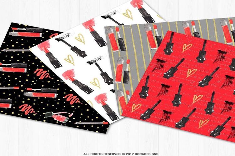 手绘化妆品女性时尚元素背景纹理Fashion_Digital