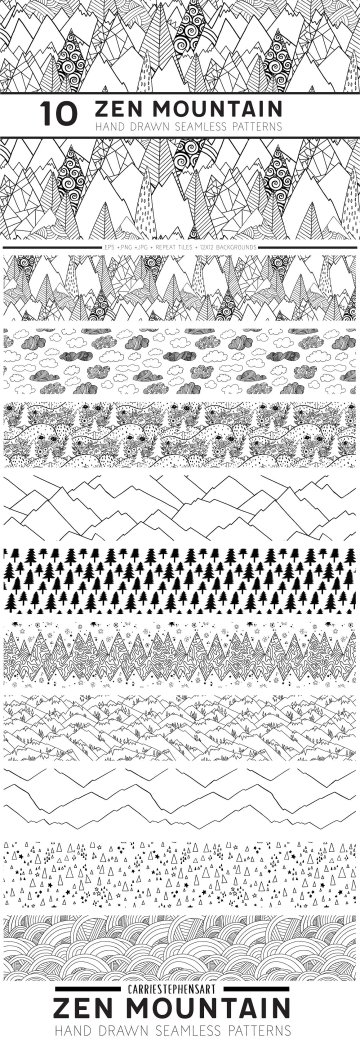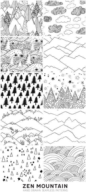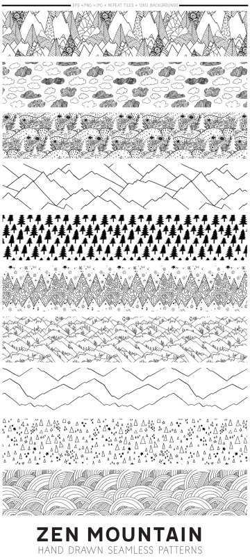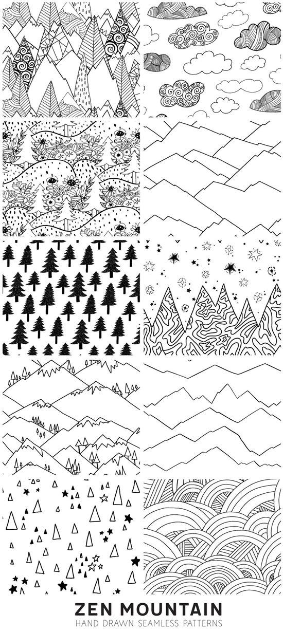 黑色和白色的 无缝背景 手绘背景 线条 包装纸 包装设计 重复图案 花纹设计 自然景观 北欧 现代 线条图案 自然 森林 时髦的 旅行 几何图案 装饰图案 创意设计 高雅 艺术 冒险 婚礼 登山 山 林地 国家 探索 度假