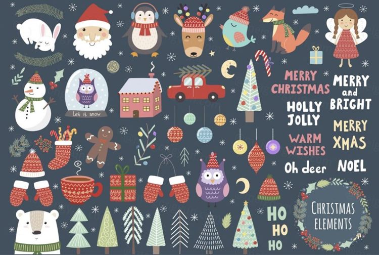 分享一组充满童趣的圣诞节元素无缝背景下载[ai,png],57个元素,包括可爱的兔子,圣诞老人,企鹅,鹿,雪人,猫头鹰,狐狸,圣诞树,熊等。全矢量,随意编辑。