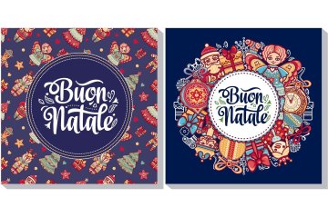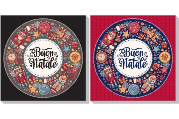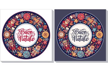 Buon Natale。圣诞节模板。束。20张贺卡。寒假在意大利。意大利。复古风格。