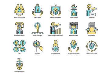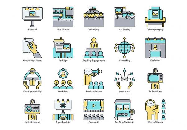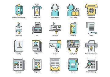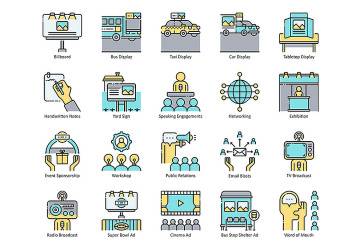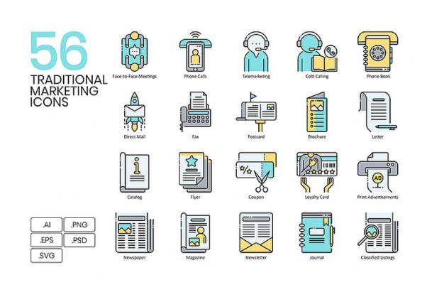56个彩色传统营销印刷广告矢量图标集Traditional Marketing