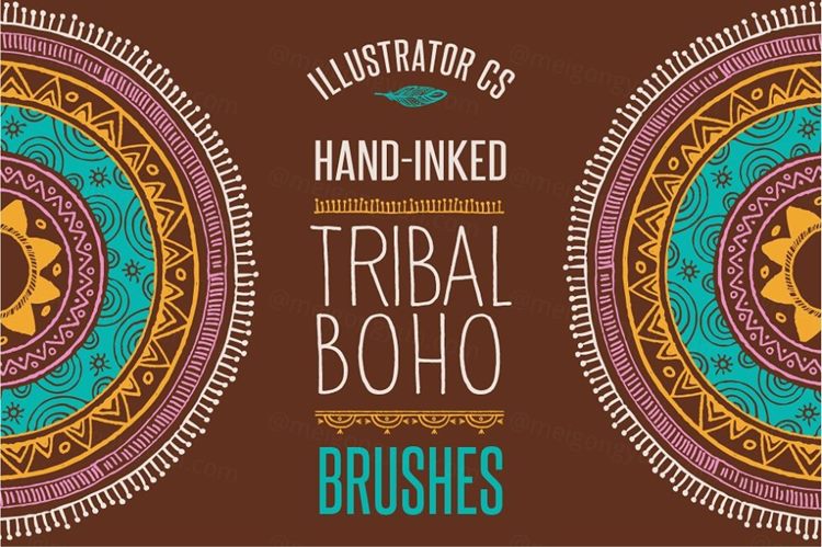这套包含50个手绘部落灵感笔刷,超级简单易用,只需在Illustrator中选择画笔工具,然后开始创建......