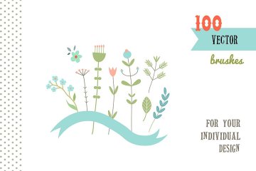 图穷联素材库 » 矢量花卉植物装饰素材100 decor brushes fo