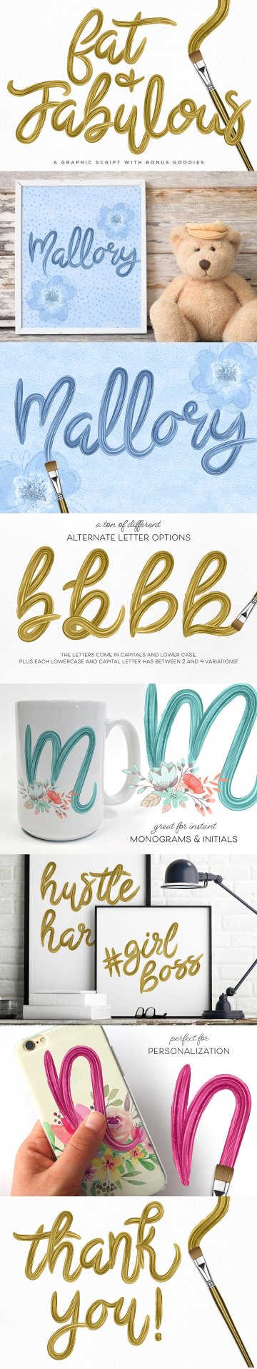 包括扩展使用!用它来个性化你的设计出售!它们非常适合文字艺术海报和字母组合项目。美丽,流畅的角色看起来很大,不像一些刷子脚本!它们非常适合口音或短语!