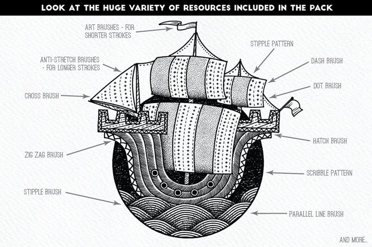 因此,Artifex Forge很高兴推出这款真正的多功能工具套件,其中包括各种不同的笔痕 - 直线和粗糙的轮廓,点和破折号,点画,阴影,曲折等等。