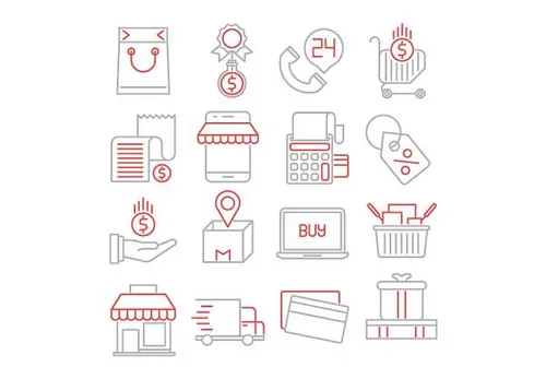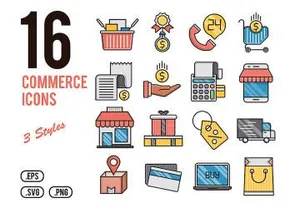 图穷联素材库 » 16个金融商务支付购物矢量图标集Commerce Icons