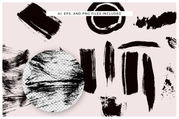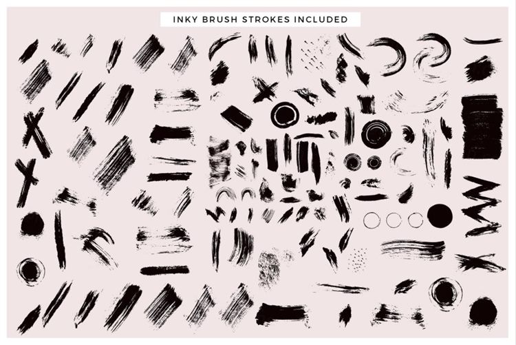 Inky Brush Strokes - 矢量图形 | 一个有趣的多功能现代手绘杂乱笔触,最初使用Sumi墨水和各种刷子和非刷子工具创建。您可以将画笔笔划图形组合在一起以获得更加独特的结果。