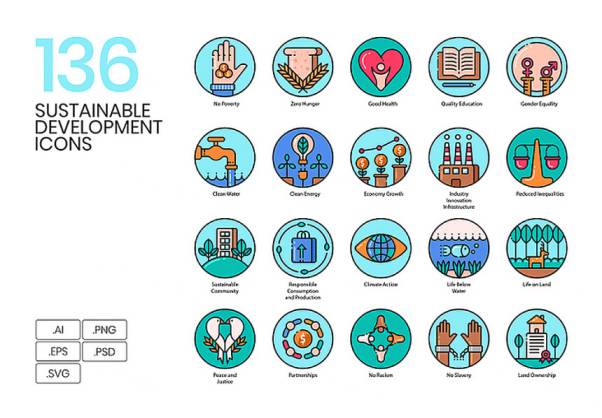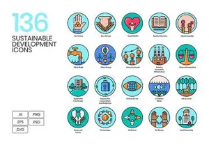 图穷联素材库 » 136个可持续发展环保能源清洁卫生矢量图标集Sustainable Dev Ic